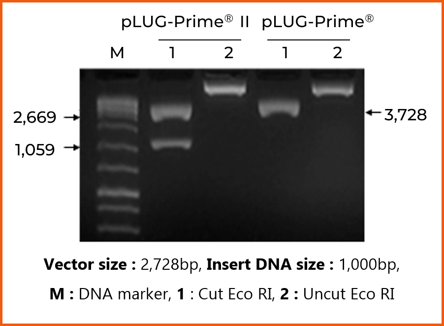 pLUG-Prime® TA-cloning Vector Kit II contain several engineered restriction-enzyme recognition sites around the TA-cloning site allowing easy restriction analysis of recombinant plasmids or re-cloning to another vector.